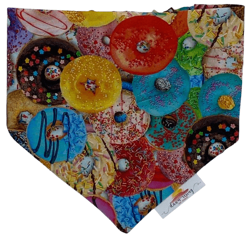 This “Donut Delight” fun scrunchie bandana is a part of our Pitty Paw Pet Charity Line.