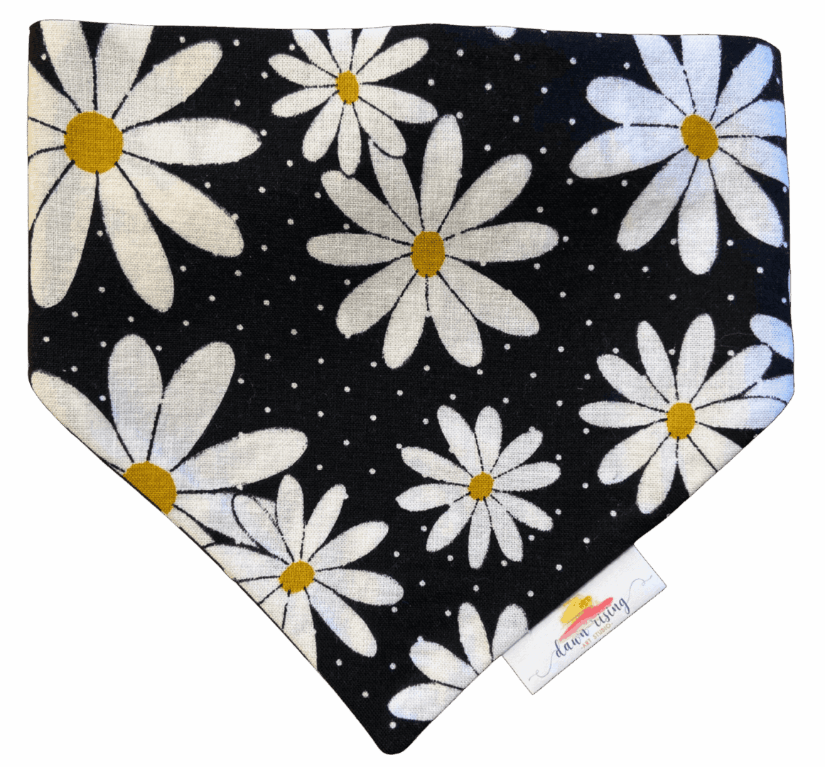 This “Dreaming Of Daisies” fun scrunchie bandana is a part of our Pitty Paw Pet Charity Line.