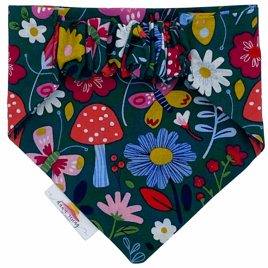 This “Enchanted Forest” fun scrunchie bandana is a part of our Pitty Paw Pet Charity Line.