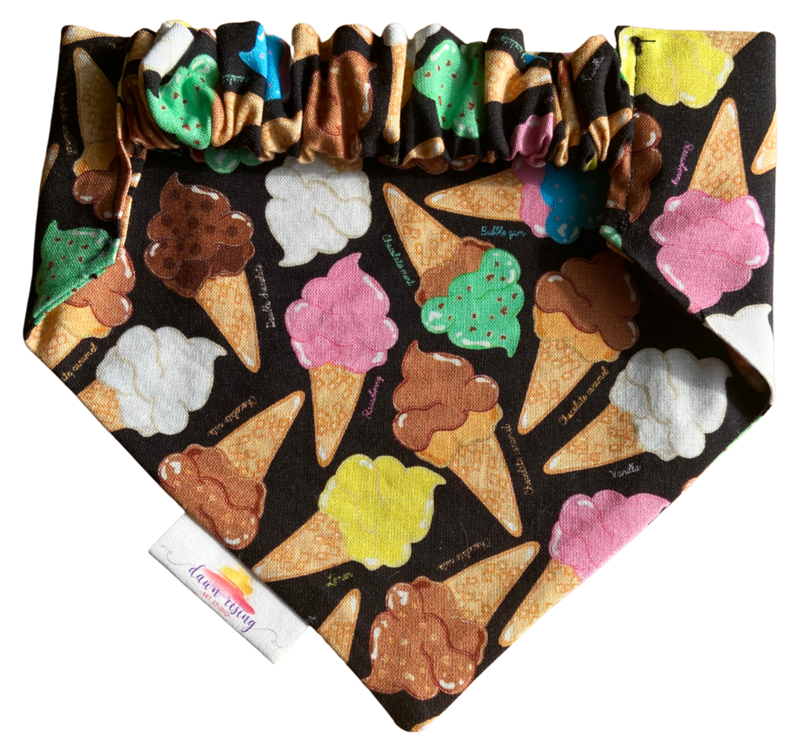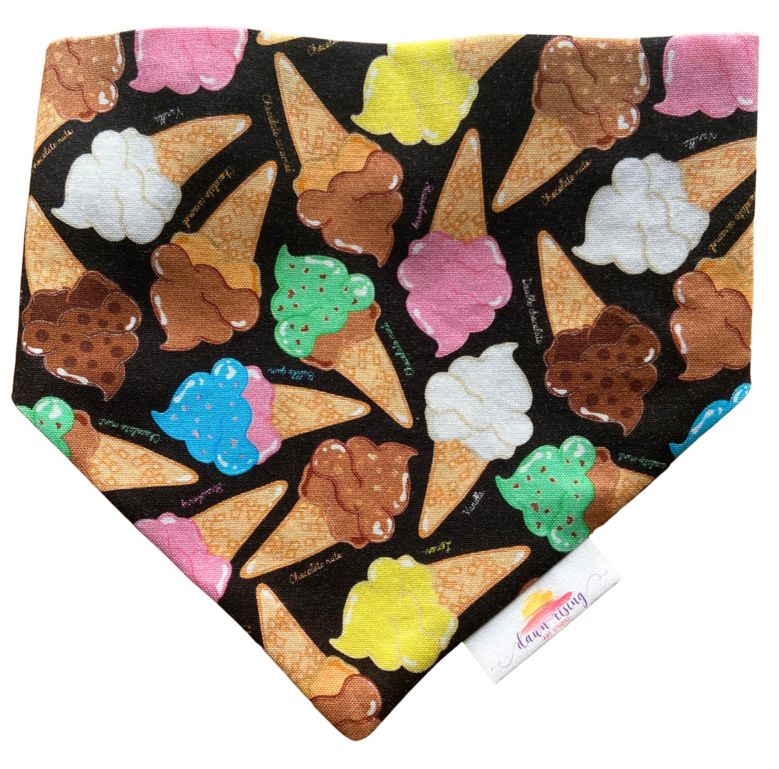 This “One Scoop Or Two” fun scrunchie bandana is a part of our Pitty Paw Pet Charity Line.