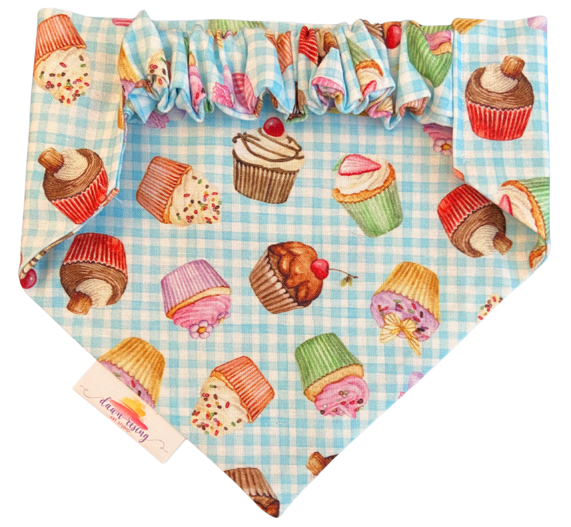 This “Pupcakes” fun scrunchie bandana is a part of our Pitty Paw Pet Charity Line.