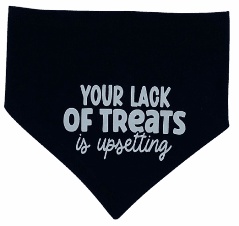 This “Your Lack Of Treats Is Upsetting“ fun scrunchie bandana is a part of our Pitty Paw Pet Charity Line.